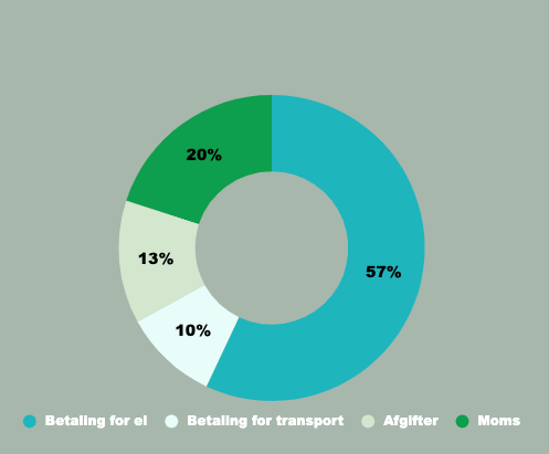 Afgifter og moms til staten udgør den største del af den totale strømpris, idet den rene elpris kun udgør en mindre del af det samlede beløb.